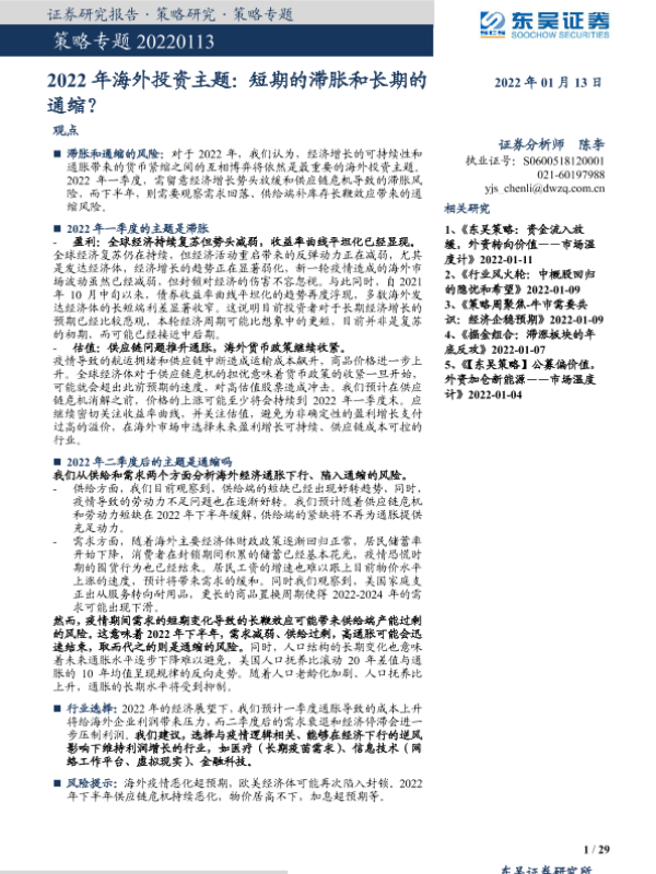 【东吴证券】【20220113】策略专题:2022年海外投资主题,短期的滞胀和长期的通缩?-29页 行业研究