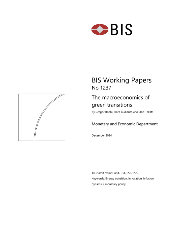 【Bank for International Settlements】【202412】The macroeconomics of green transitions-33页 学术论文