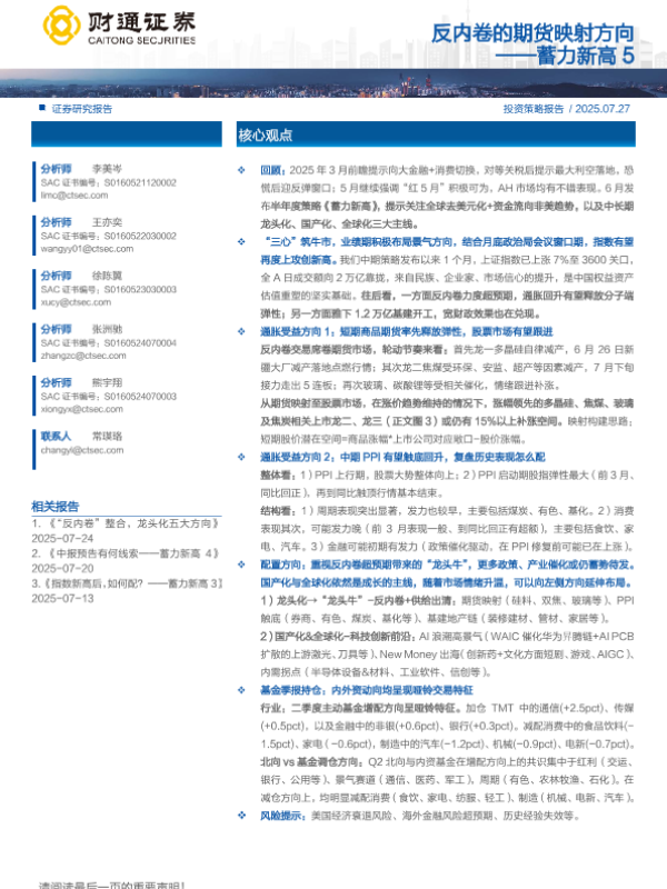 【财通证券】【202507】反内卷的期货映射方向 ——蓄力新高 5-13页 证券期货研究报告