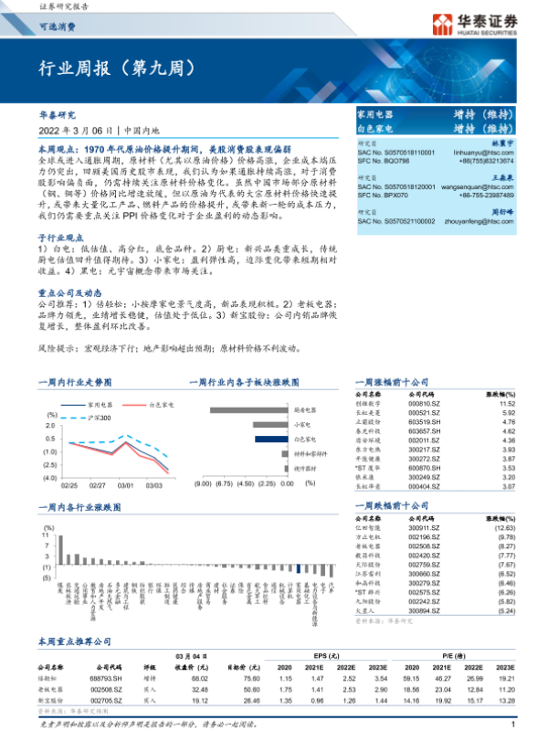 【华泰证券】【20220306】可选消费行业周报(第九周)-13页 行业研究