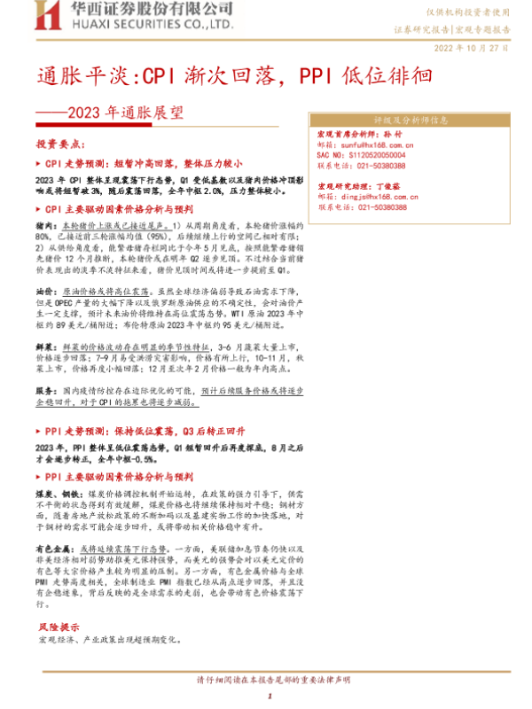【华西证券】【20221027】2023年通胀展望:通胀平淡,CPI渐次回落,PPI低位徘徊-16页 行业研究