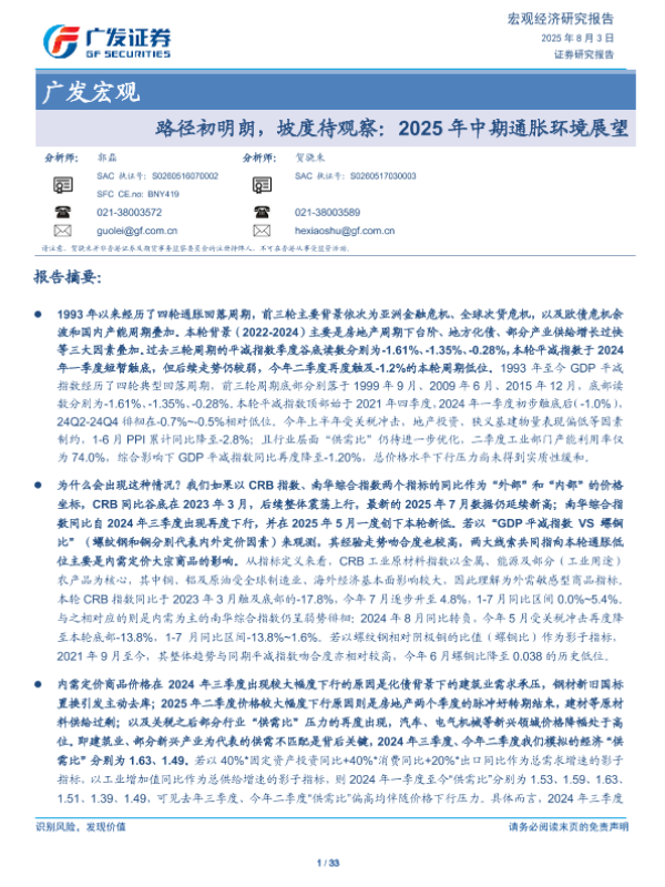 【广发证券】【202508】2025年中期通胀环境展望:路径初明朗,坡度待观察-33页 证券期货研究报告