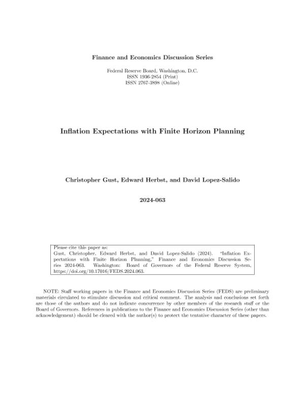 【Board of Governors of the Federal Reserve System】【2024063】Inflation Expectations with Finite Horizon Planning-49页 行业研究