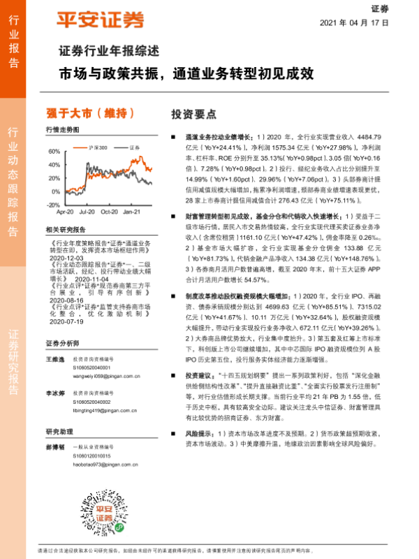 【平安证券】【20210417】证券行业年报综述:市场与政策共振,通道业务转型初见成效-17页 行业研究