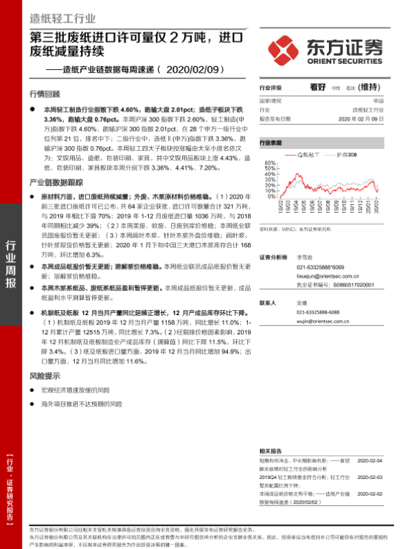 【东方证券】【20200209】20200209-东方证券-造纸产业链数据每周速递:第三批废纸进口许可量仅2万吨,进口废纸减量持续-14页 行业研究