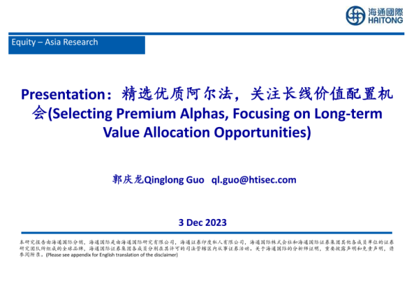 【海通国际】【20231203】精选优质阿尔法,关注长线价值配置机会-34页 行业研究
