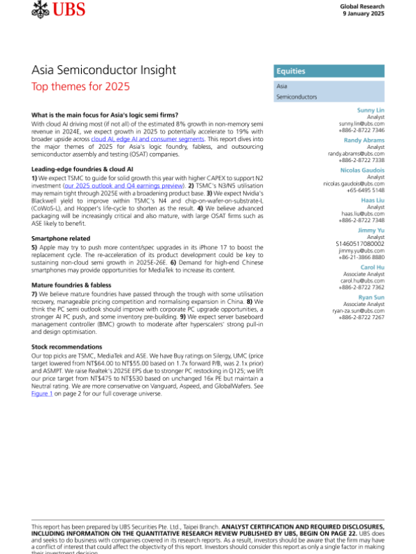 【UBS Securities Pte. Ltd.&Taipei Branch】【20250109】Asia Semiconductor Insight _Top themes for 2025_-30页 行业研究
