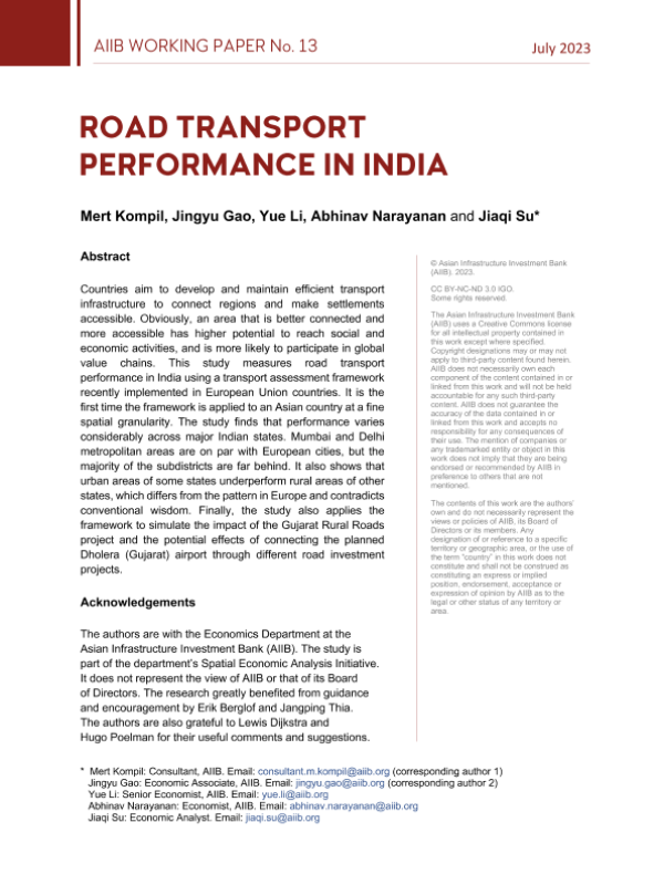 【Asian Infrastructure Investment Bank (AIIB)】【2023】亚投行-印度道路运输绩效-36页 行业研究