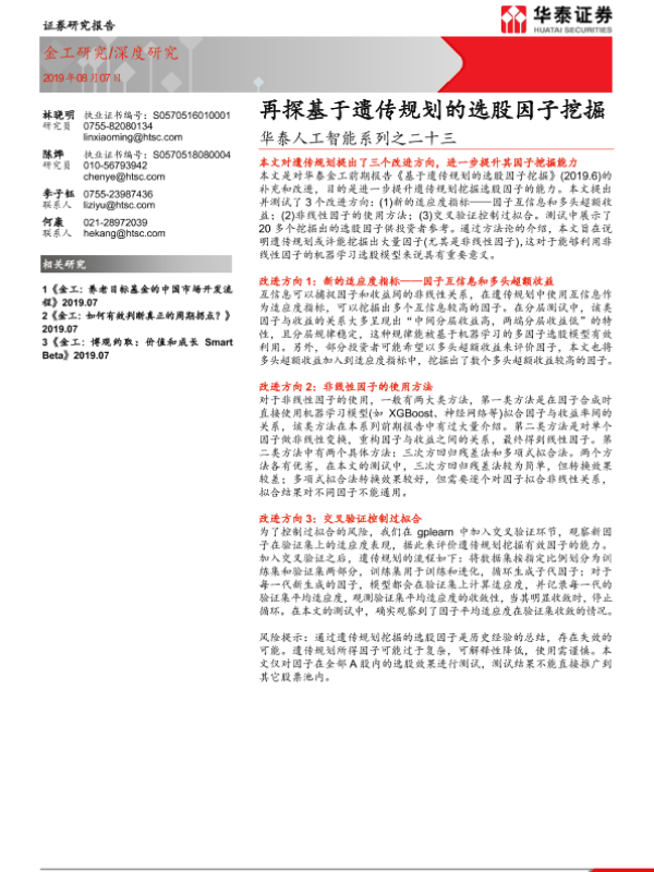【华泰证券】【20190807】人工智能系列之二十三:再探基于遗传规划的选股因子挖掘-32页 行业研究