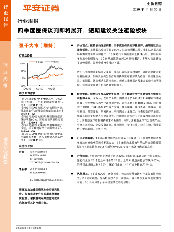 【平安证券】【20201130】四季度医保谈判即将展开,短期建议关注避险板块-6页 行业研究
