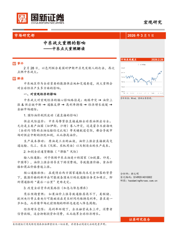 【国新证券】【202603】中东点火重燃解读:中东战火重燃的影响-5页 证券期货研究报告