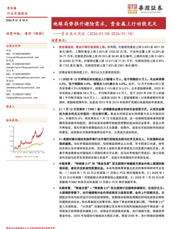 【华源证券】【202601】贵金属双周报(2026/01/05-2026/01/18)-13页 证券期货研究报告