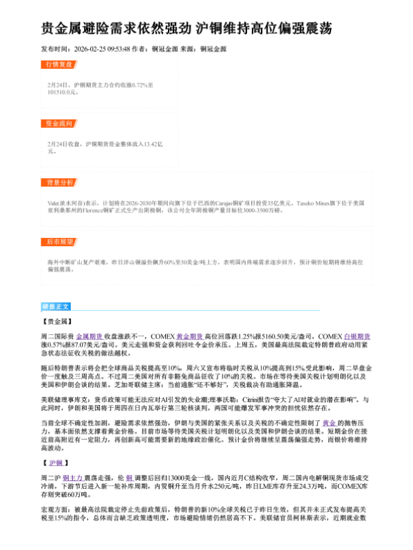 【铜冠金源期货】【202602】贵金属避险需求依然强劲 沪铜维持高位偏强震荡-2页 证券期货研究报告