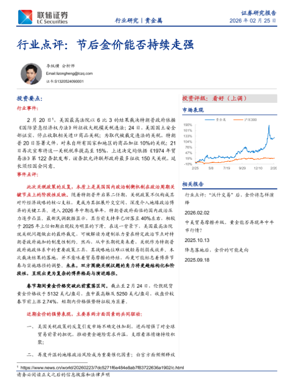 【联储证券】【202602】行业点评:节后金价能否持续走强-5页 证券期货研究报告