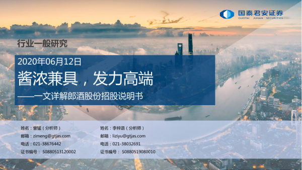 【国泰君安证券】【20200612】一文详解郎酒股份招股说明书:酱浓兼具,发力高端-26页 招股书