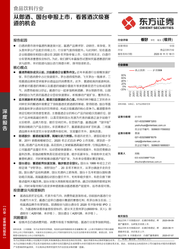 【东方证券】【20201118】食品饮料行业:从郎酒、国台申报上市,看酱酒次级赛道的机会-29页 行业研究