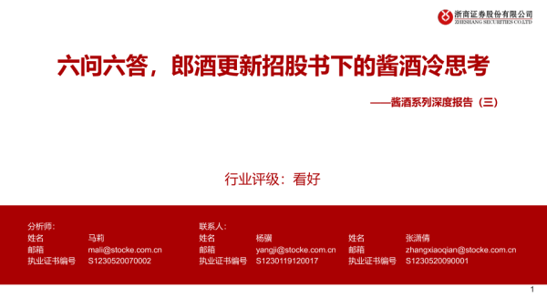 【浙商证券】【20210618】20210618-浙商证券-酱酒系列深度报告(三):六问六答,郎酒更新招股书下的酱酒冷思考-35页 行业研究