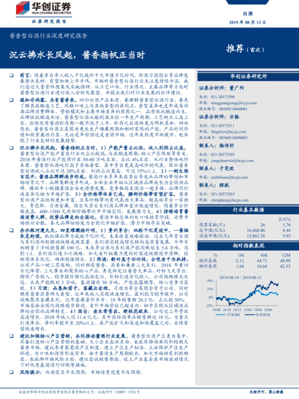【华创证券】【20190813】酱香型白酒行业深度研究报告:沉云拂水长风起,酱香扬帆正当时-32页 行业研究