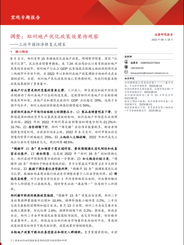 【西部证券】【20230818】三论中国经济修复式增长:调整,郑州地产优化政策效果待观察-17页 行业研究