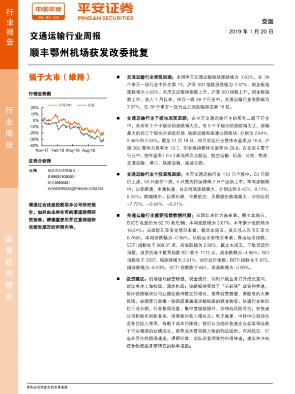 【平安证券】【20190120】交通运输行业周报:顺丰鄂州机场获发改委批复-16页 行业研究