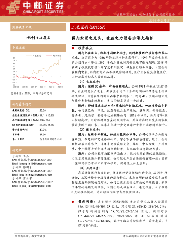 【中邮证券】【20240227】三星医疗-601567.SH-国内配用电龙头,受益电力设备出海大趋势-36页 行业研究