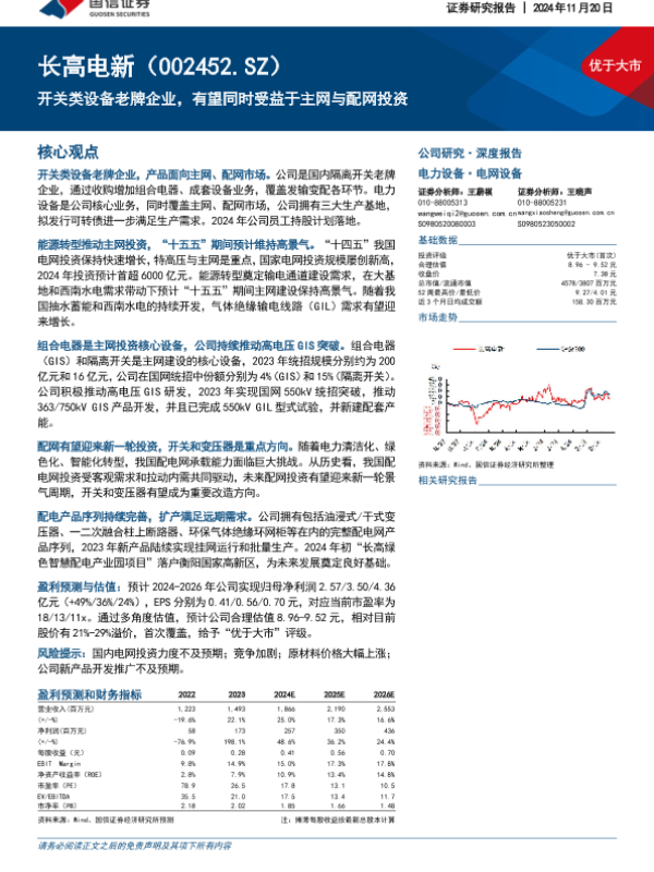 【国信证券】【20241120】长高电新-开关类设备老牌企业,有望同时受益于主网与配网投资-35页 行业研究