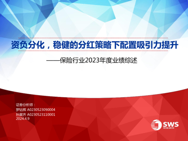 【申万宏源】【20240409】保险行业2023年度业绩综述:资负分化,稳健的分红策略下配置吸引力提升-30页 行业研究