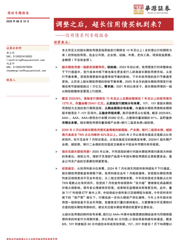 【华源证券】【202508】调整之后,超长信用债买机到来?-17页 证券期货研究报告