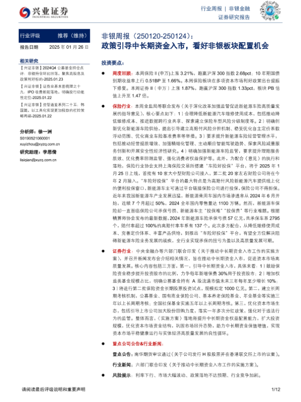 【兴业证券】【20250126】非银行业周报:政策引导中长期资金入市,看好非银板块配置机会-12页 行业研究