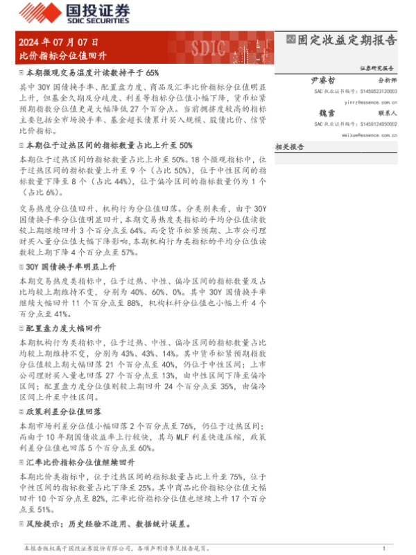 【国投证券】【20240707】固定收益定期报告:比价指标分位值回升-9页 行业研究