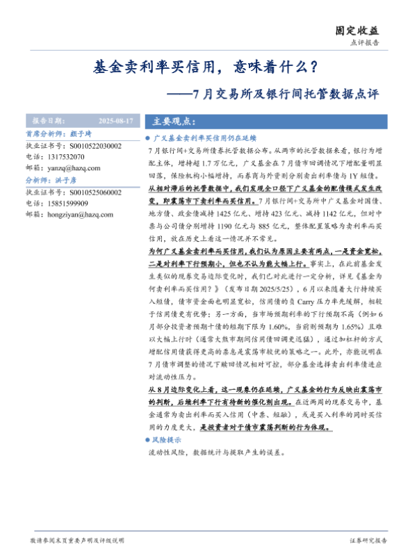 【华安证券】【202508】7月交易所及银行间托管数据点评:基金卖利率买信用,意味着什么?-16页 证券期货研究报告