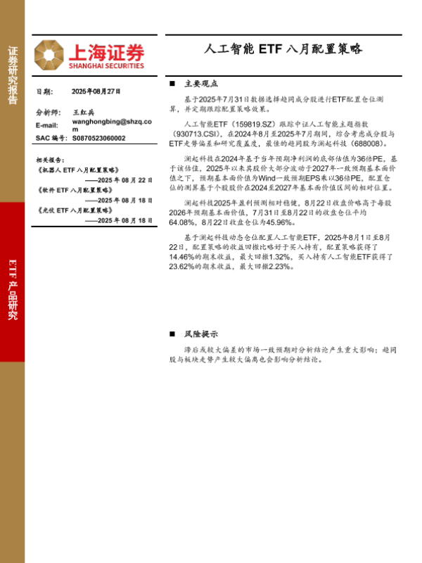 【上海证券】【20250827】澜起科技-人工智能ETF八月配置策略-6页 证券期货研究报告