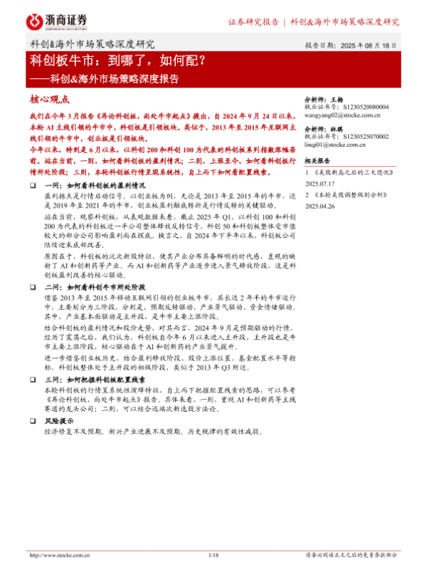 【浙商证券】【202508】科创&海外市场策略深度研究——科创板牛市:到哪了,如何配?-18页 证券期货研究报告