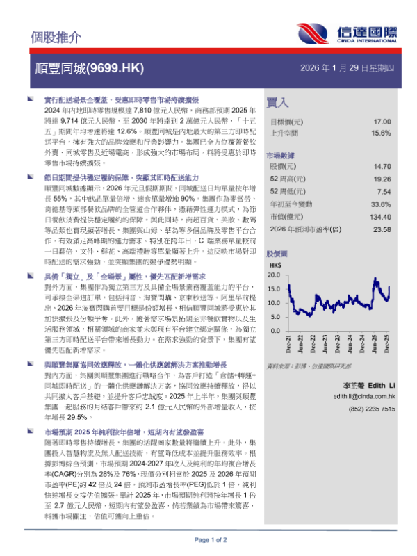 【信达国际研究部】【202601】顺丰同城(9699.HK) 个股推介-2页 证券期货研究报告