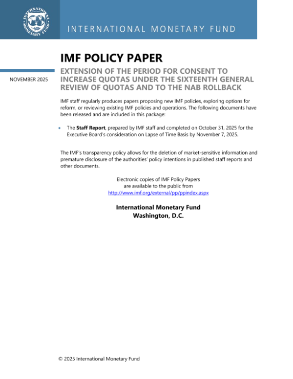 【国际货币基金组织】【202511】EXTENSION OF THE PERIOD FOR CONSENT TO INCREASE QUOTAS UNDER THE SIXTEENTH GENERAL REVIEW OF QUOTAS AND TO THE NAB ROLLBACK-14页 政策文件