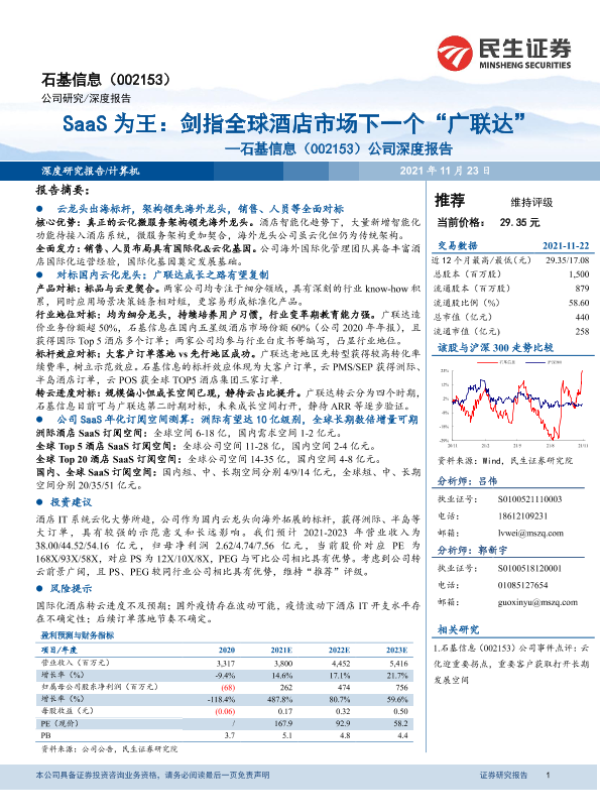 【民生证券】【20211123】SaaS为王:剑指全球酒店市场下一个“广联达”——石基信息(002153)公司深度报告-54页 行业研究