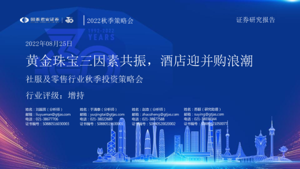【国泰君安证券】【20220825】社服及零售行业秋季投资策略会:黄金珠宝三因素共振,酒店迎并购浪潮-49页 行业研究