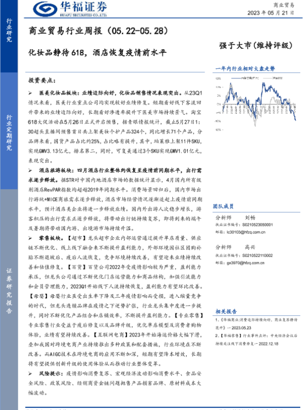 【华福证券】【20230521】商业贸易行业周报:化妆品静待618,酒店恢复疫情前水平-7页 行业研究