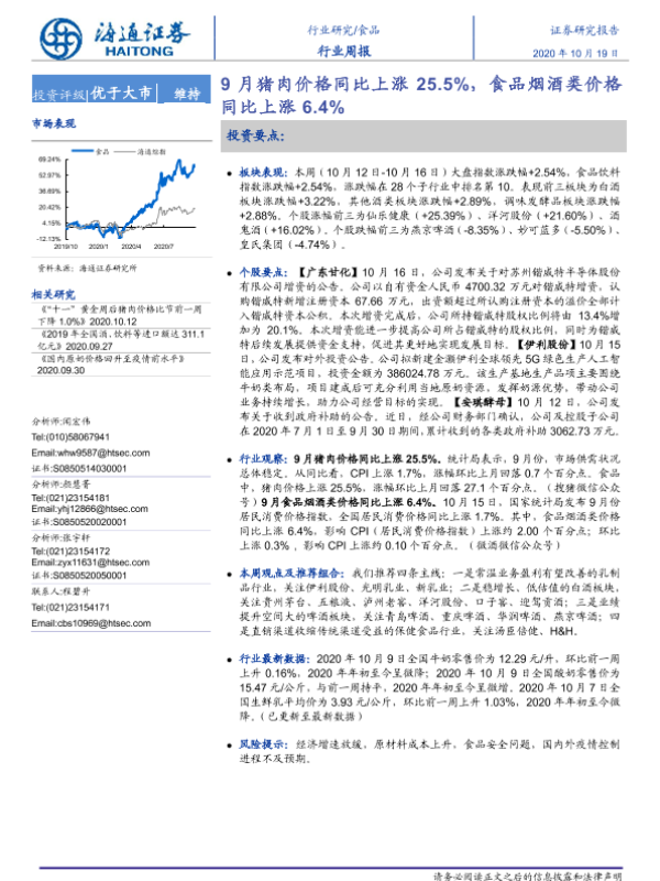 【海通证券】【20201019】20201019-海通证券-食品行业周报:9月猪肉价格同比上涨25.5%,食品烟酒类价格同比上涨6.4%-7页 行业研究