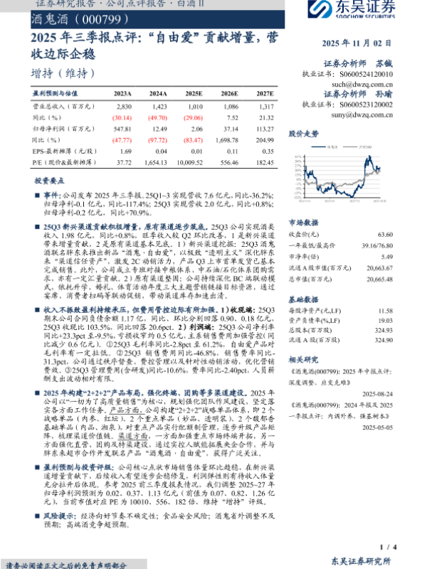 【东吴证券】【202511】2025年三季报点评:“自由爱”贡献增量,营收边际企稳-4页 证券期货研究报告