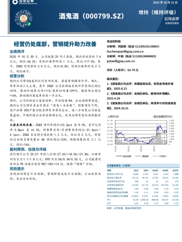 【国金证券】【202510】经营仍处底部,营销提升助力改善-4页 证券期货研究报告