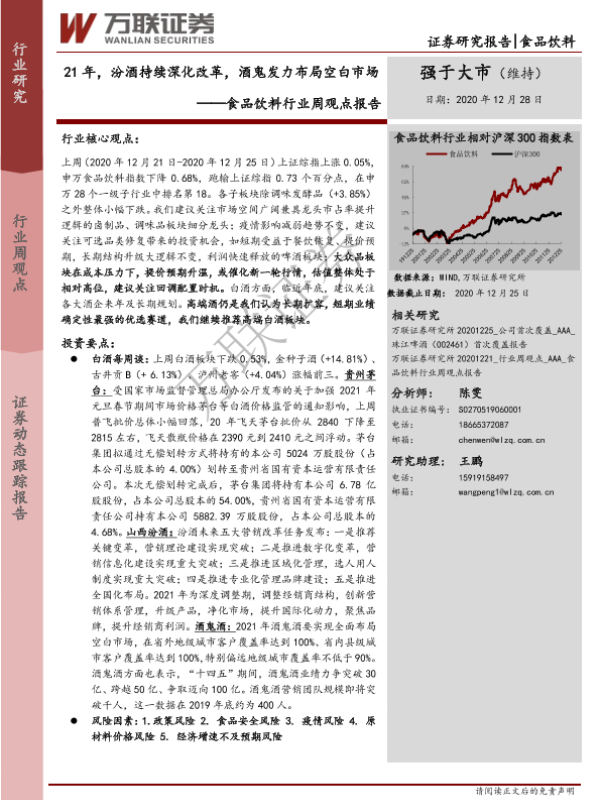 【万联证券】【20201228】20201228-万联证券-食品饮料行业周观点报告:21年,汾酒持续深化改革,酒鬼发力布局空白市场-11页 行业研究