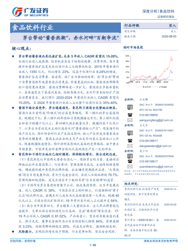 【广发证券】【20200803】20200803-广发证券-食品饮料行业深度分析:茅台带动“酱香热潮”,赤水河畔“百舸争流”-50页 行业研究