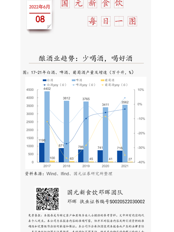 【国元证券】【20220608】酿酒业趋势:少喝酒,喝好酒-1页 行业研究