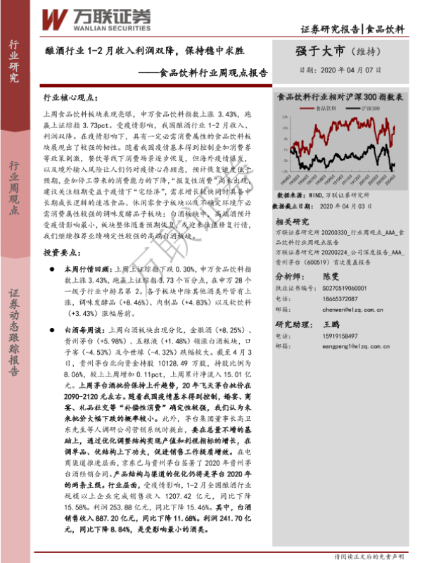 【万联证券】【20200407】20200407-万联证券-食品饮料行业周观点报告:酿酒行业1-2月收入利润双降,保持稳中求胜-13页 行业研究