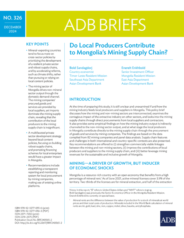【Asian Development Bank】【2024】Do Local Producers Contribute to Mongolia’s Mining Supply Chain?-12页 行业研究