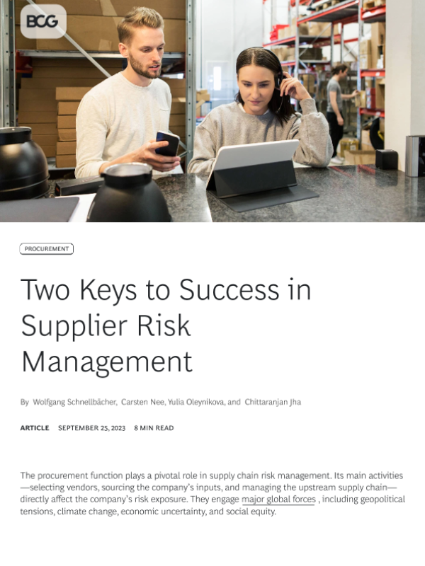 【Boston Consulting Group】【20230925】Two Keys to Success in Supplier Risk Management-8页 行业研究