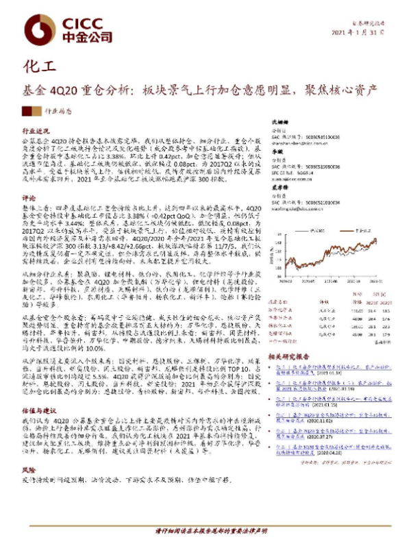 【中金公司】【20210131】化工:基金4Q20重仓分析-板块景气上行加仓意愿明显,聚焦核心资产-9页 行业研究