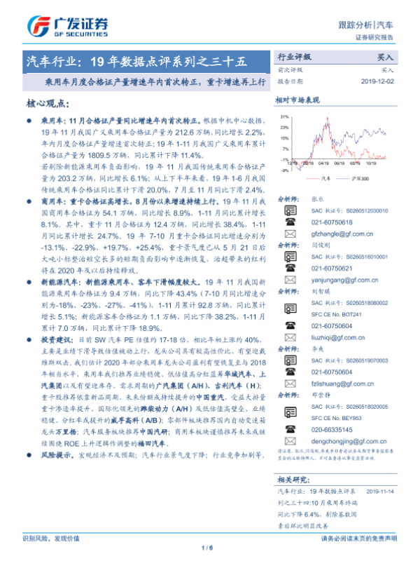 【广发证券】【20191202】汽车行业:19年数据点评系列之三十五-乘用车月度合格证产量增速年内首次转正,重卡增速再上行-6页 行业研究