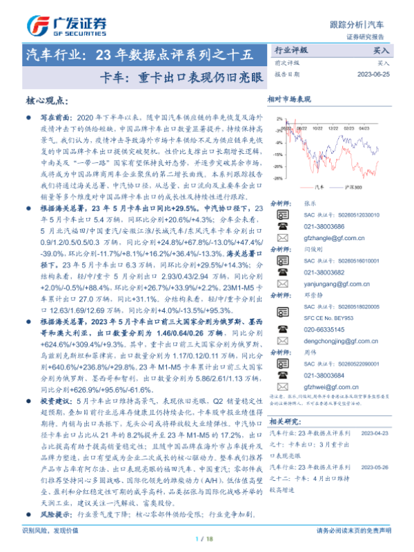 【广发证券】【20230625】23年数据点评系列之十五-卡车:重卡出口表现仍旧亮眼-18页 行业研究